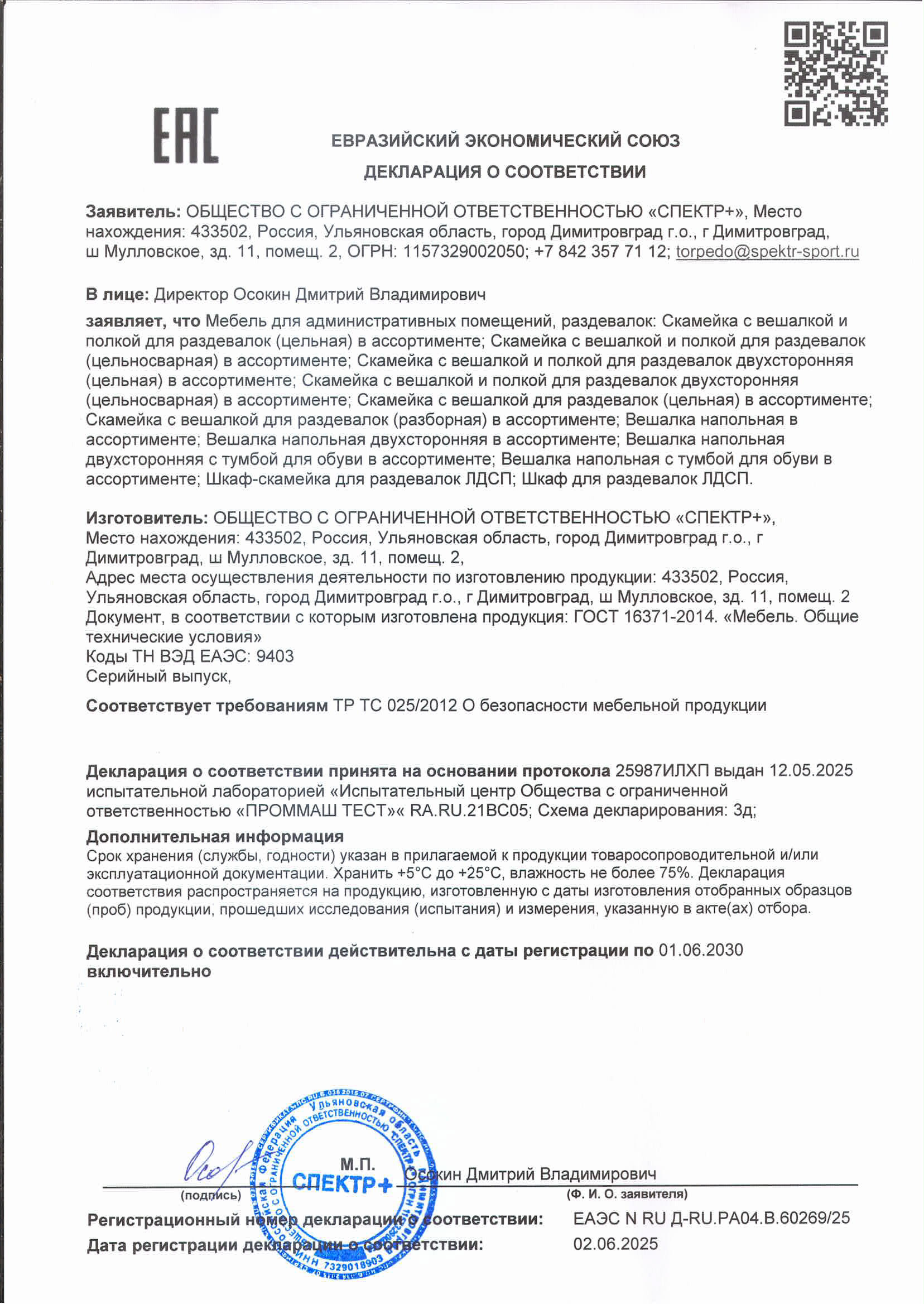 Декларация о соответствии (мебель)